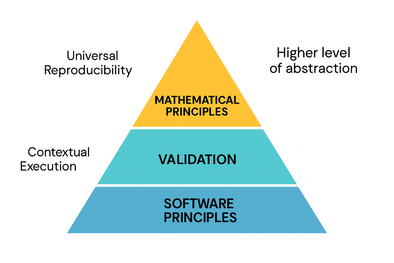 - How mathematical principles operate at the highest level of abstraction: certainty, reproducibility, universality, and geometric scalability.